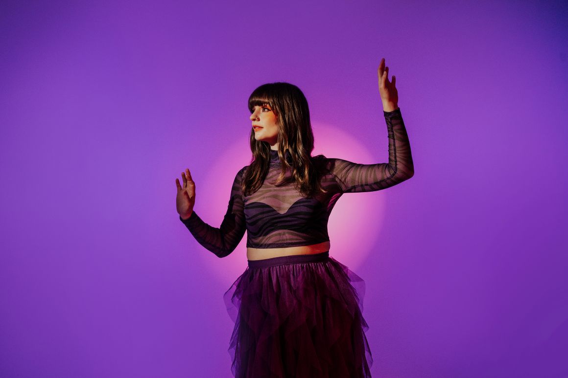 The accompanying video takes us through the full emotional spectrum of the track. Set to a world of purple, the video plays with the idea of light and dark, by highlighting both the sadness and the humour in the song. ‘It was a fun video to make, very DIY. I was up until 4am the night before layering up beach balls and yoga balls, all these different sized balls, with black crepe paper. Using a chainsaw in my sister’s living room was not on my bingo card for this year, but here we are’ – says Anna on making the clip.