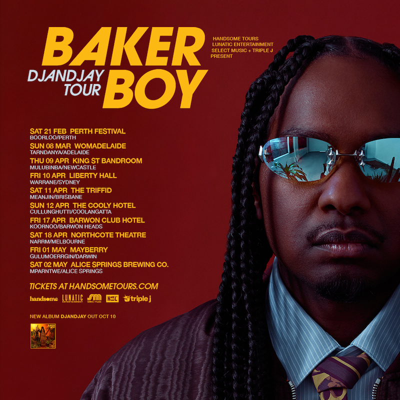 ‘DJANDJAY’ is Baker Boy’s most emotionally layered and creatively evolved work to date. Named in honour of his late grandmother, ‘DJANDJAY’ also pays homage to the Yolŋu spiritual figure of the same name: a guiding octopus spirit that leads souls forward. Blending ancestral influences with sharp-edged global production, the new album folds in Yolŋu Matha, English, and Burarra across a dynamic soundscape that spans hip-hop, punk, gospel, and electronic textures.