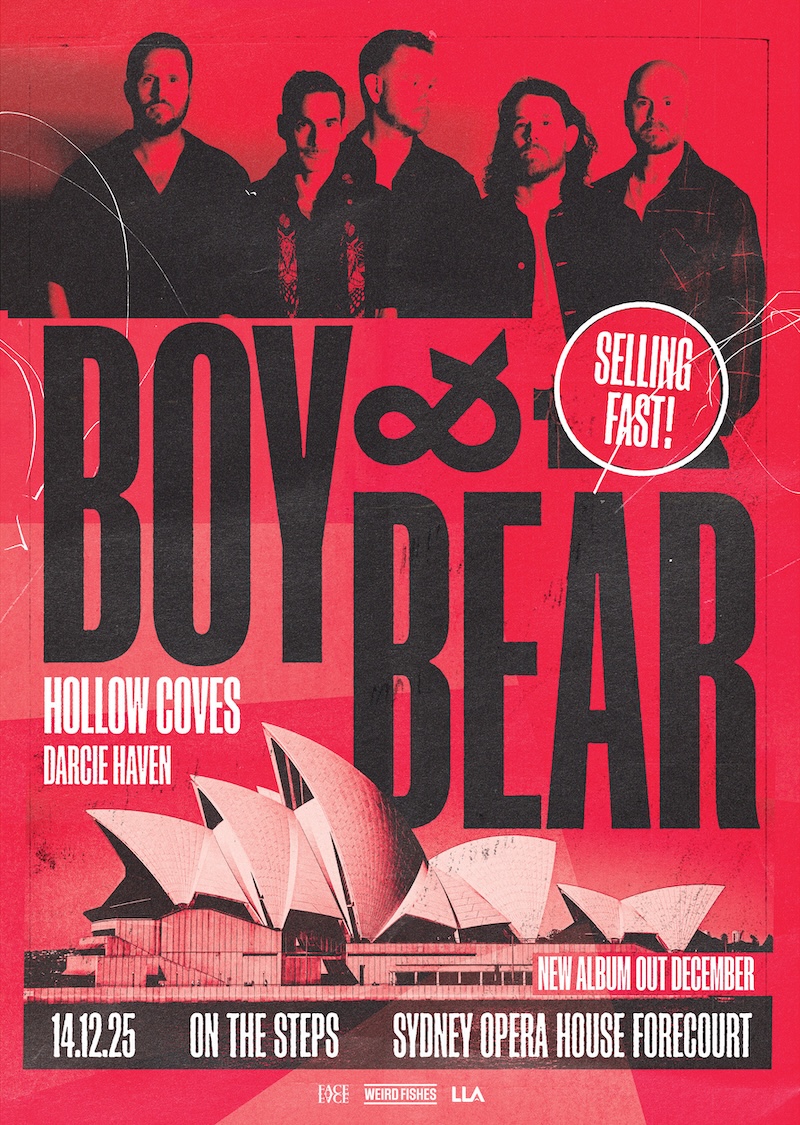 Off the back of previously selling the most headline tickets of their career globally, Boy & Bear are closing out 2025 in spectacular fashion, both with the upcoming release of their entirely independent new album, and also with their biggest headline show to date locked in for December 14, performing on the steps at the iconic Sydney Opera House Forecourt with special guests Hollow Coves and Darcie Haven. A longtime dream in the making, revealed poignantly recently online with Boy & Bear members and brothers Tim Hart and Jon Hart detailing their connection to the Opera House and live music, the band will also appear at Good Day Sunshine on November 29 and kick off 2026 with a performance at Launceston’s Festivale on February 1 next year ahead of their freshly announced curated headline performance on May 8 at Brisbane’s Riverstage.