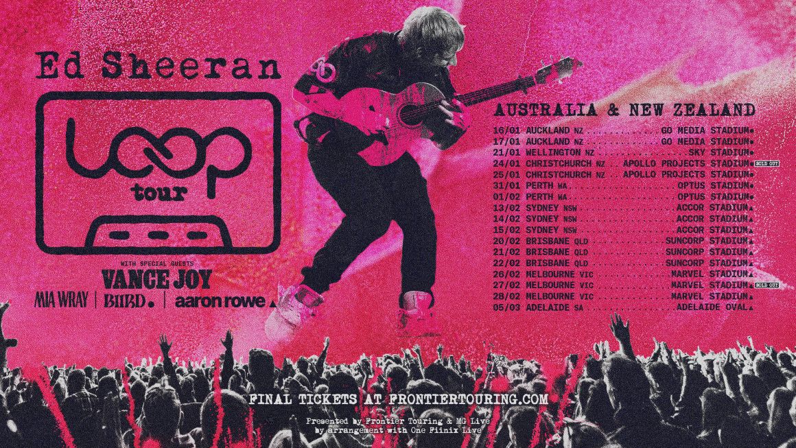 Spanning 17 stadium shows across Aotearoa and Australia, the Loop Tour marks Ed Sheeran’s long-awaited return to our shores and the beginning of a bold new chapter in his exceptional live career. Following years of record-breaking tours and historic global performances, fans can expect a spectacular, career-spanning show – new music from his chart-topping 2025 album Play (recent singles ‘Azizam’, ‘Sapphire’ and ‘Camera’); hits from his unparalleled catalogue (Shape Of You’, ‘Thinking Out Loud’, ‘Castle On The Hill’, ‘Perfect’, ‘Bad Habits’, ‘Shivers’ and many more); and the loop-pedal mastery that has made Ed Sheeran one of the most compelling live performers of his generation.