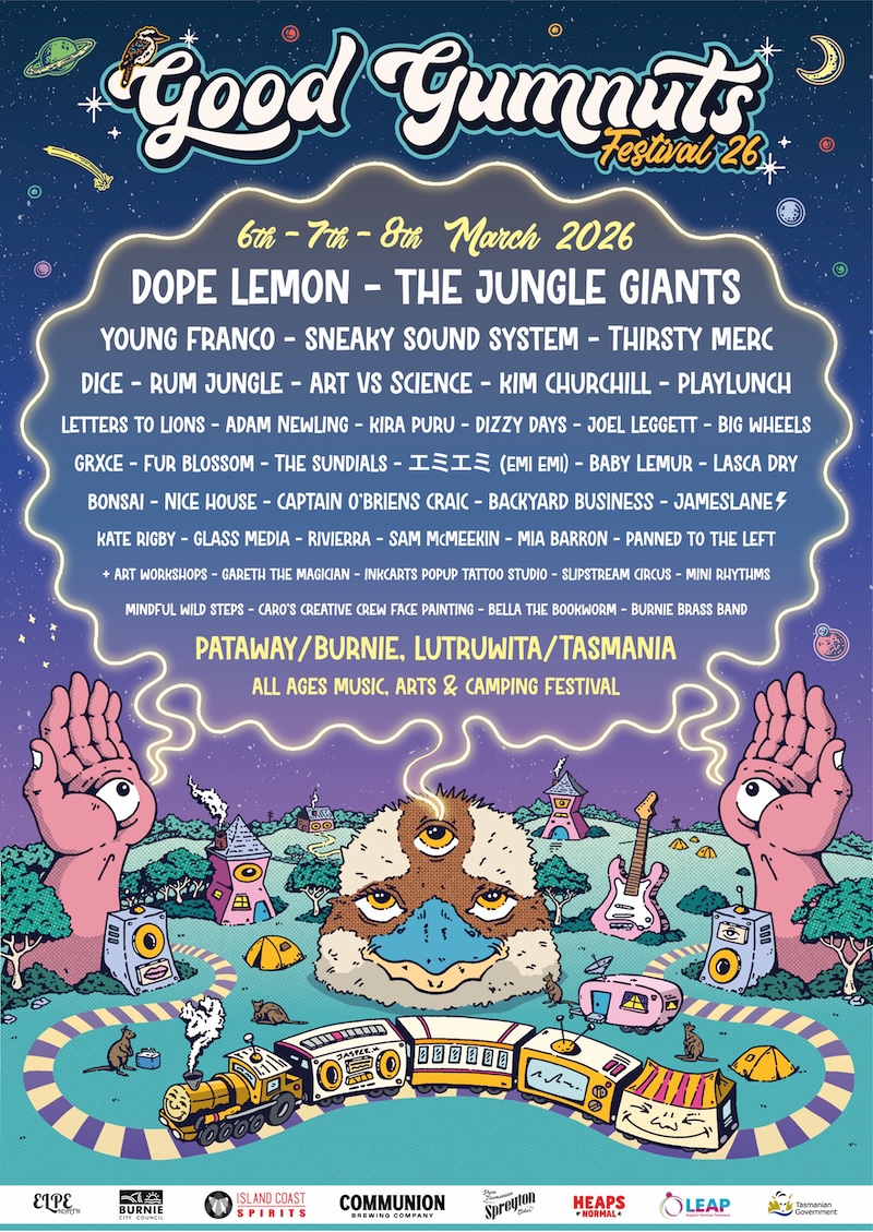Good Gumnuts Festival has revealed its 2026 lineup, led by iconic Australian acts Dope Lemon and The Jungle Giants. What began in 2022 as a small community gathering has quickly grown into one of Tasmania’s standout all-ages music festivals, with next year marking its biggest edition yet. Festival co-director Harry Badcock said landing Dope Lemon and The Jungle Giants was “a bit of a pinch-me moment.”