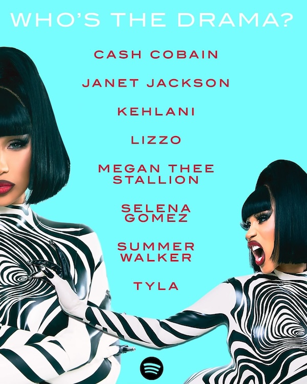 On the media front, she appeared as a surprise guest on The Tonight Show Starring Jimmy Fallon HERE, co-hosted NBC TODAY With Jenna & Friends HERE, and participated in in-depth interviews with Jennifer Hudson HERE, Zane Lowe HERE, and Gayle King HERE. She was also featured on the Billboard R&B/Hip-Hop Power Players Cover, highlighting her impact and influence in the music industry, see cover HERE, and partnered with Spotify for the “Countdown To Am I The Drama?: Cardi B in conversation w/ Kelly Rowland” HERE.
