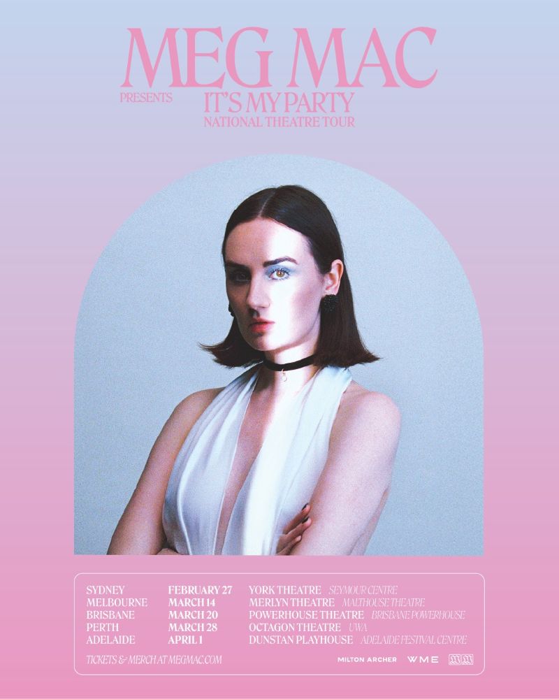 To celebrate the release, Meg Mac will take “It’s My Party” on the road with a national theatre tour, following three sold-out performances at Belvoir Street Theatre late last year. More recently, Meg had been playing a run of unannounced pop-up shows at bars around the country, often revealed less than 12 hours before doors. The short-notice gigs have consistently drawn strong turnouts, offering fans a rare chance to see Meg in stripped-back, close-quarters settings and underscoring the demand for her return to the stage.