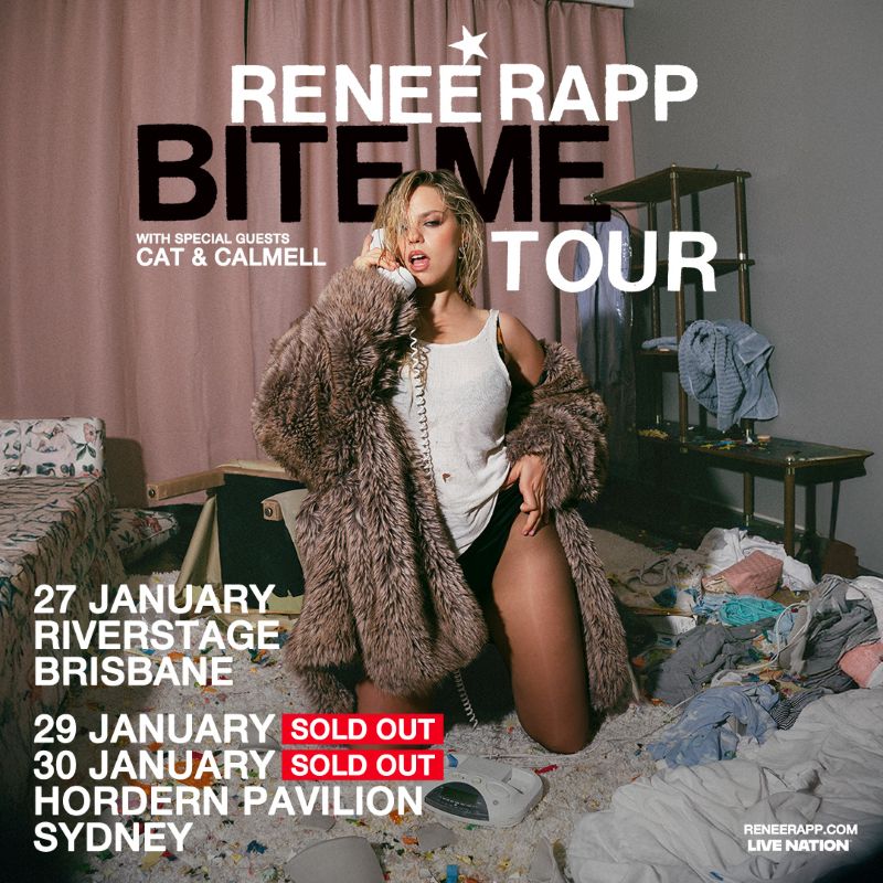 Global pop powerhouse Reneé Rapp has announced that local stars Cat & Calmell will join her highly anticipated Bite Me Australian tour this summer. Marking Rapp’s first-ever headline tour of Australia, the Bite Me shows will see her bring her bold, unapologetic live performances to fans in Brisbane, Sydney and Melbourne, celebrating her acclaimed latest album and meteoric rise as one of pop’s most compelling new voices.
