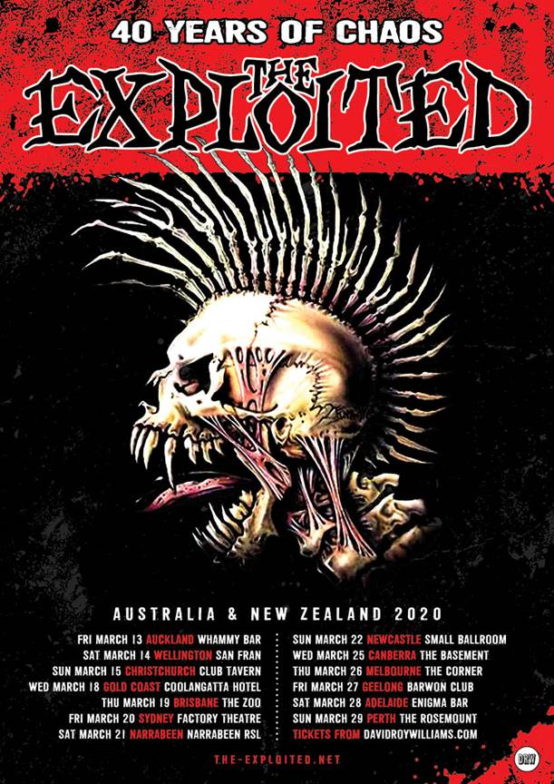 THE EXPLOITED are just as relevant today as they were in 1980 and with the band’s loyal squadron of fans The Barmy Army in tow, THE EXPLOITED are set to unleash 40 years of fury, anarchy and chaos upon Australian and New Zealand.