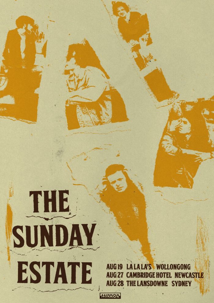 Formed in 2018, The Sunday Estate spent the year perfecting their craft, before they took to the stage in 2019 as they grew in confidence and size.  2020 saw the release of three songs, I Don’t Want to Be AloneGive Me (Something) and Let’s Stop Pretending, the strength of the tracks largely in frontman Conor O’Reilly’s voice, his depictions of the intimacy of home life and the trials of childhood and young adulthood.  Following the growing buzz surrounding the band and their heaving live shows, The Sunday Estate signed to indie tastemaker label Mirror Records, becoming part of the Mirror Music Group family, who have represented the likes of Gang Of Youths, Middle Kids, Clea, Sloan Peterson and Charlie Collins.