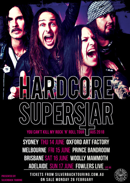 Sweden’s premiere purveyors of thrash metal meets sleaze rock, HARDCORE SUPERSTAR will be touring Australia this June!