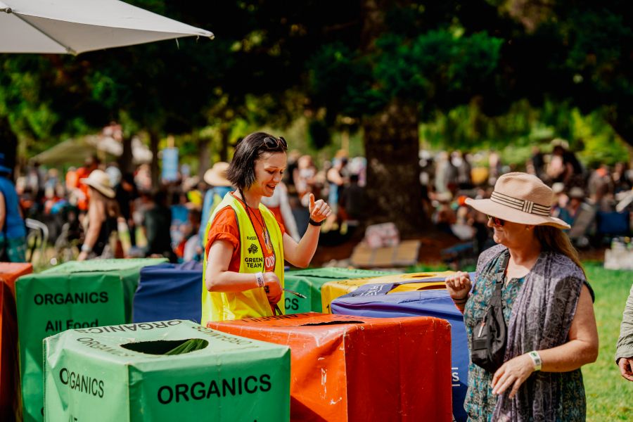 Segmented recycling and organic waste bins across the festival site, diverts over 98% of the waste generated by the festival away from landfill through our ‘zero waste to landfill’ strategy with a four-bin system waste management program, which has been in effect since 2009.
