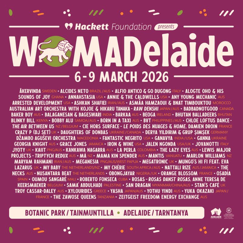 This festival has also just announced its 2026 The Planet Talks program – WOMADelaide’s flagship three-day forum bringing together leading international and local voices to explore urgent and inspiring conversations on sustainability and the environment.